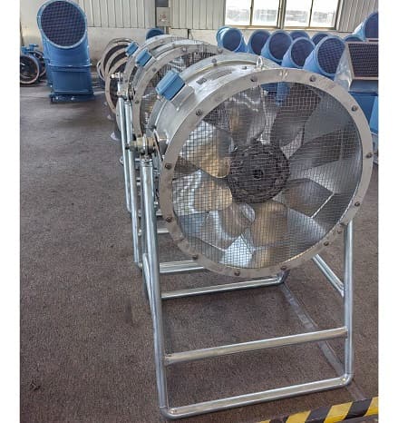 Осевой вентилятор с регулируемым шагом, предназначенный для обеспечения мощного локального охлаждения и вентиляции для операторов в цехах, литейных цехах и других рабочих зонах с высокой температурой.